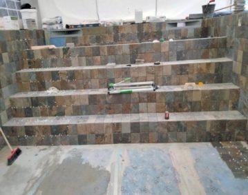 Piscine réalisé en plein centre avec des carreaux de 15x15cm pour une finition unique. La installation a été fait avec des produits à haute résistance pour un résultat durable et une pose personnalisé.