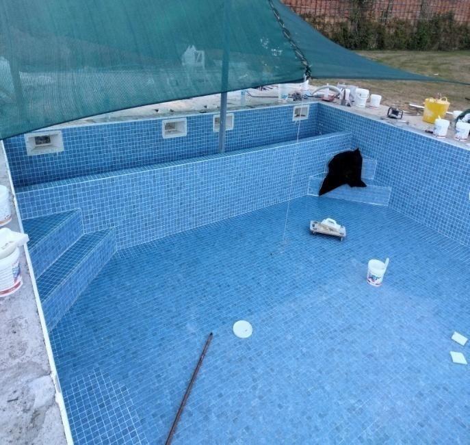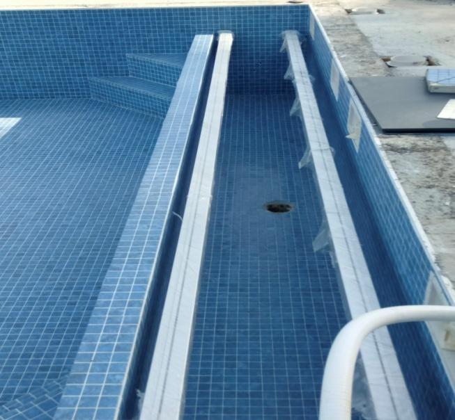 Nous avons impermeabisé la superficie entière avec la toile dans le bute de l’étanchéité de la piscine mais aussi de garantie une pose de qualité avec une finition unique autant pour la mosaïque que pour les joints.